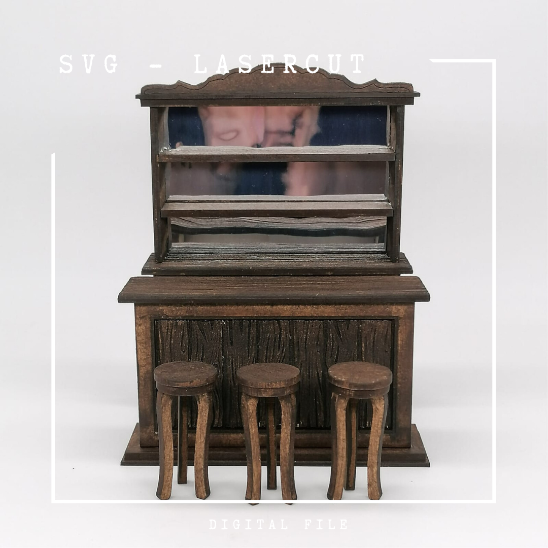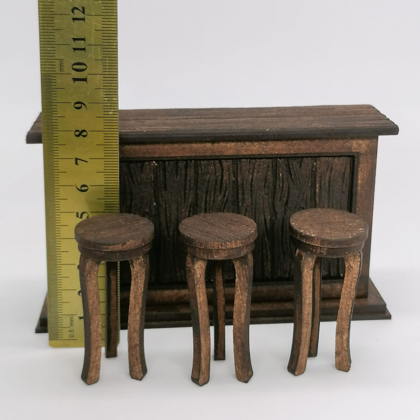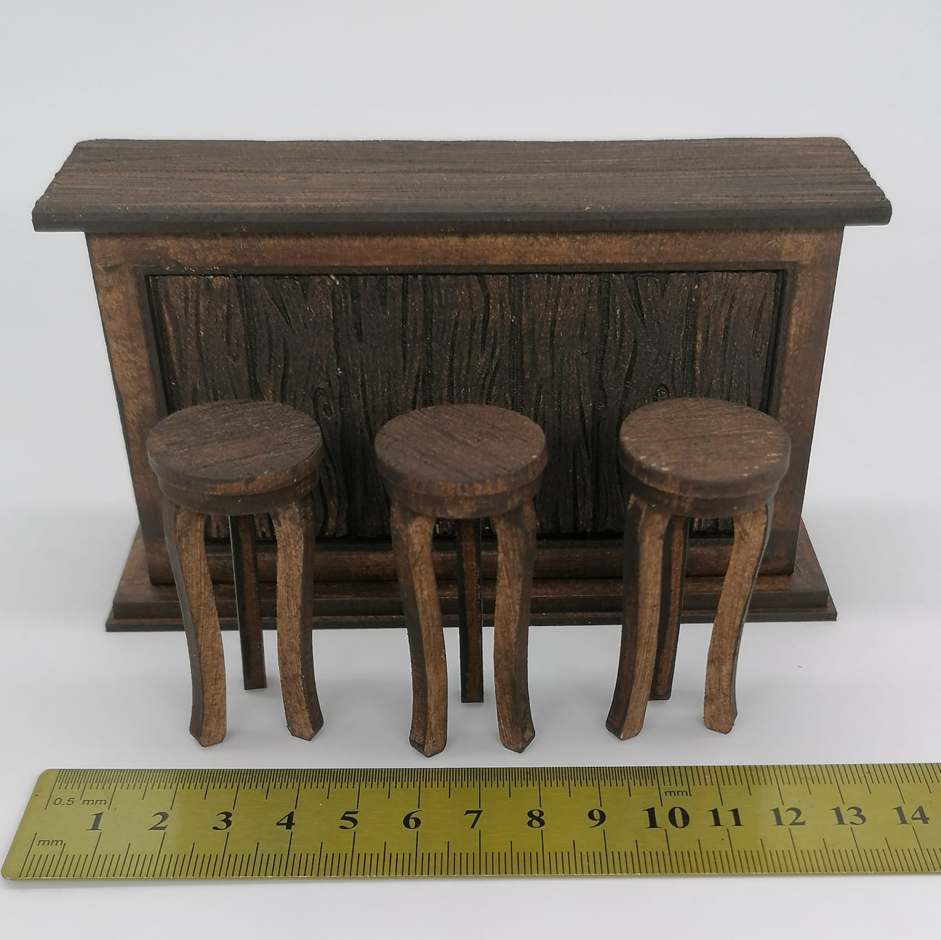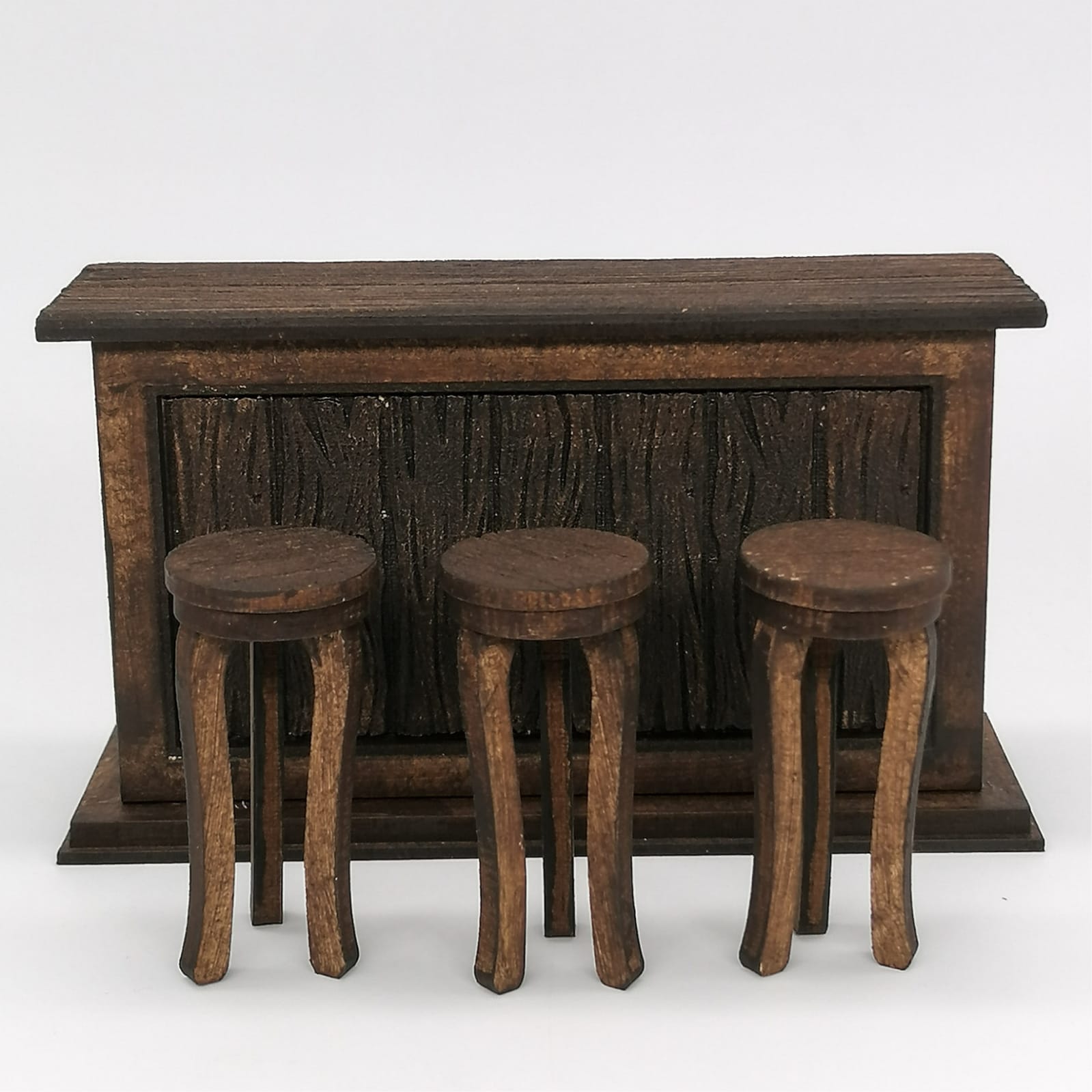 Bar con mostrador y tres taburetes, así que kit para su Book Nook, Roombox Diorama o Dollhouse