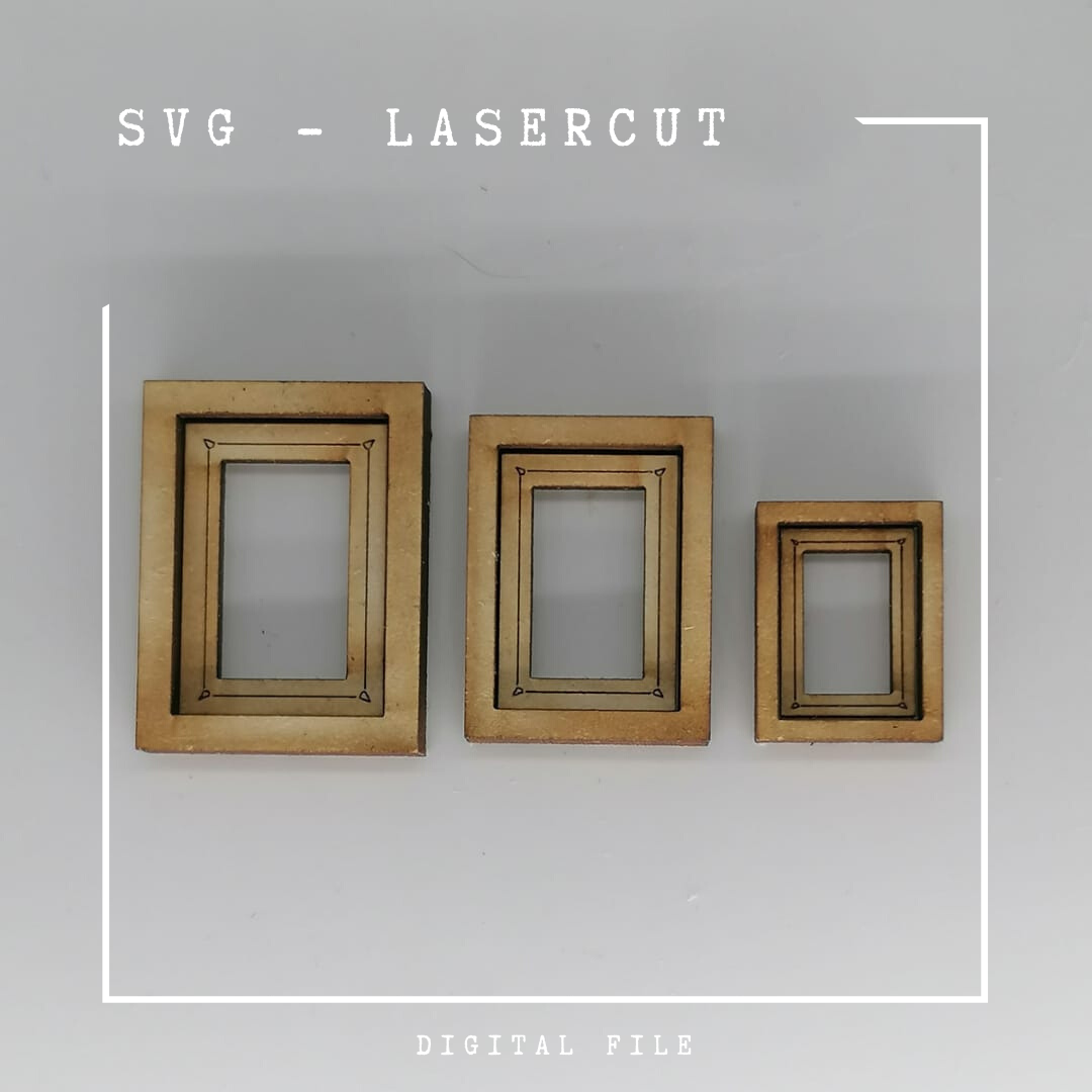 ¡Faltan imágenes en su Roombox o BookNook! Aquí obtienes marcos que encajan perfectamente en tu diorama (escala 1:12 y 1:24). Estos marcos de fotos en miniatura están grabados y cortados en cartón de 4 mm.