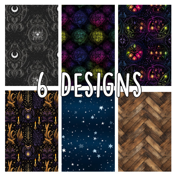Das Besondere an den Tapeten: Du kannst sie beliebig erweitern, ohne dass Übergänge sichtbar werden. So entstehen nahtlose Designs, die dir unendliche Möglichkeiten für deine kreativen Projekte bieten. Die fünf Motive reichen von mystischen Sternenhimmeln bis hin zu kunstvollen Ornamenten und schaffen eine magische Atmosphäre, die deine Miniaturwelt lebendig macht.