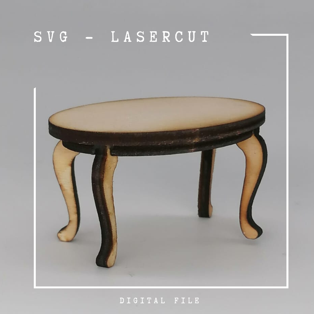 Elegante SVG-Lasercut-Datei für einen kleinen Miniaturtisch im Maßstab 1:12