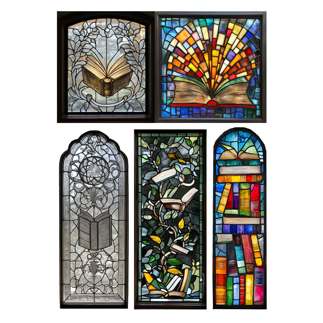 ✔ Verschiedene Designs – detailreiche Fenster mit Büchern und floralen Elementen