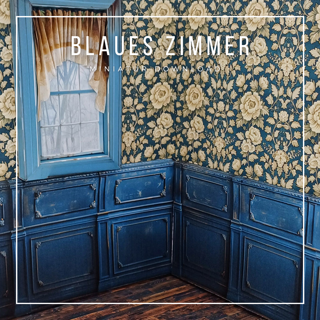 Roombox Design "Blaues Zimmer" im Maßstab 1:12 zum Drucken und Basteln