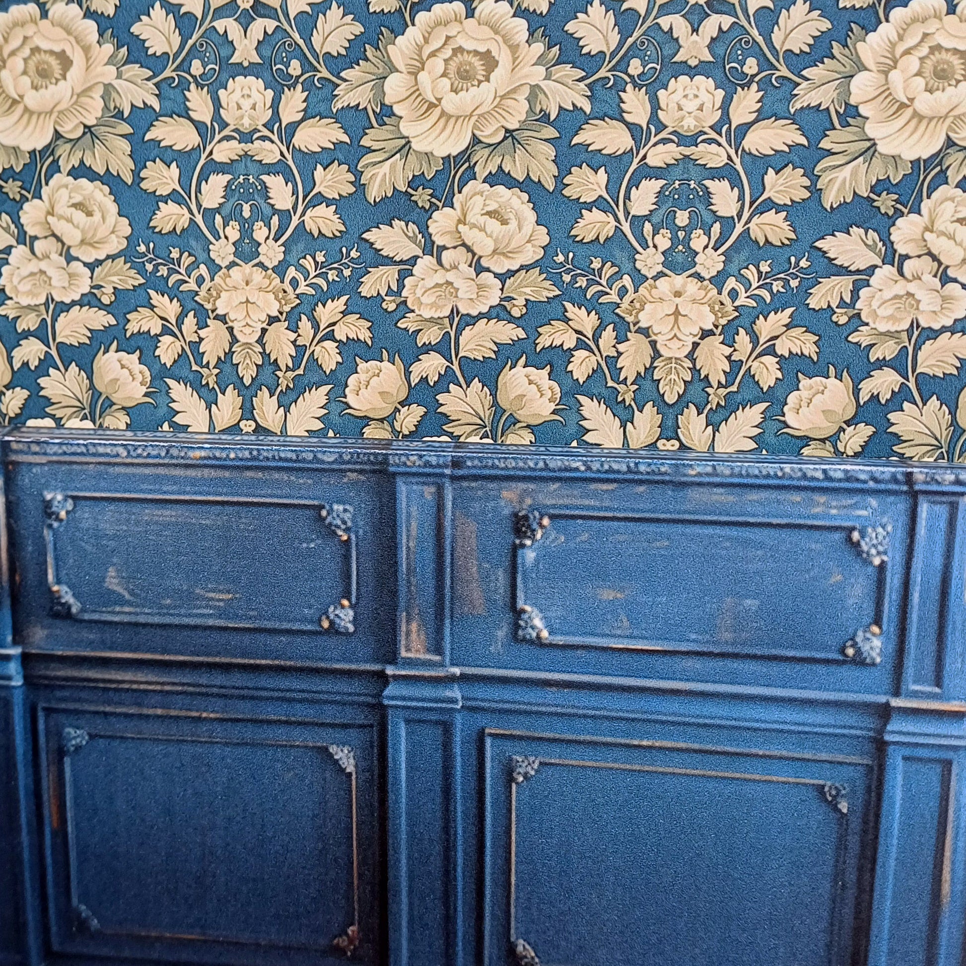 - 5 verschiedene Tapeten: Wähle aus einer Palette von blauen Mustern, die Stil und Eleganz in dein Miniaturzimmer bringen.