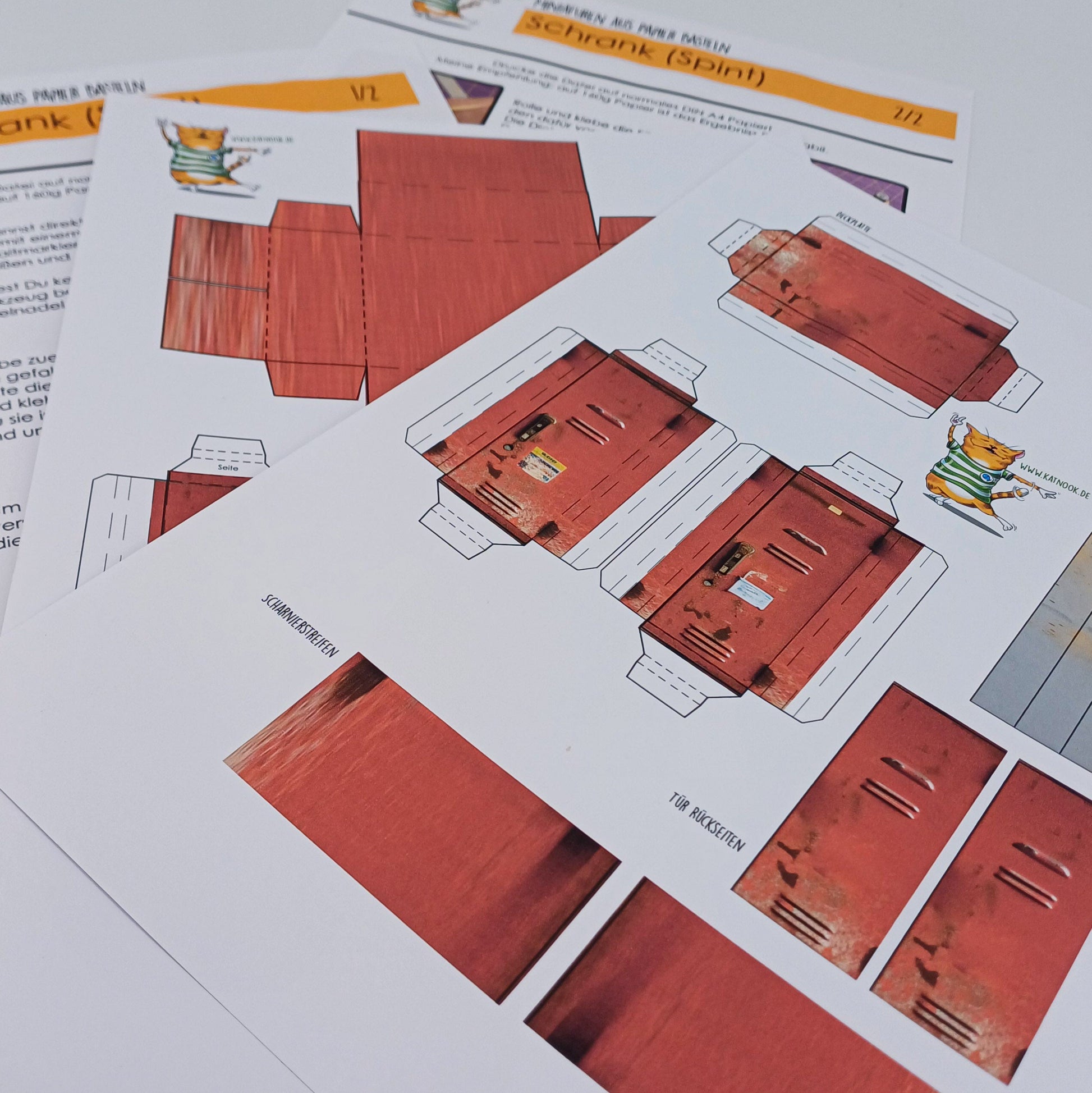 Komplettes Bastelprojekt: Erhalte eine vollständige Druckdatei zum Ausdrucken und Basteln eines detailgetreuen Spind-Schranks.