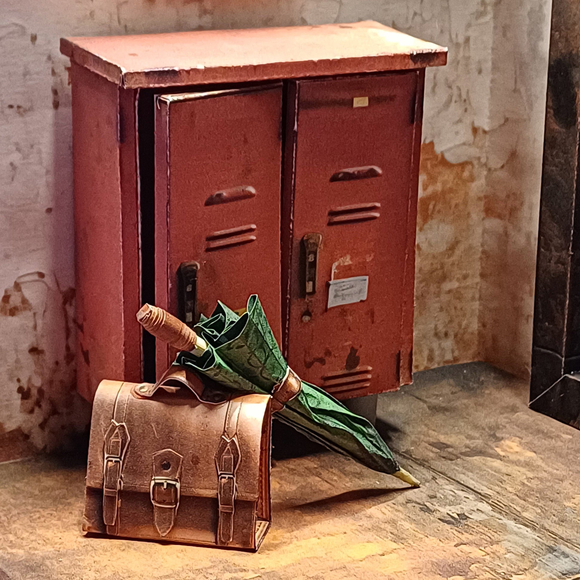 Druckdatei zum basteln von einem roten Spind Schrank für Roombox Diorama, Puppenhaus oder Book Nook