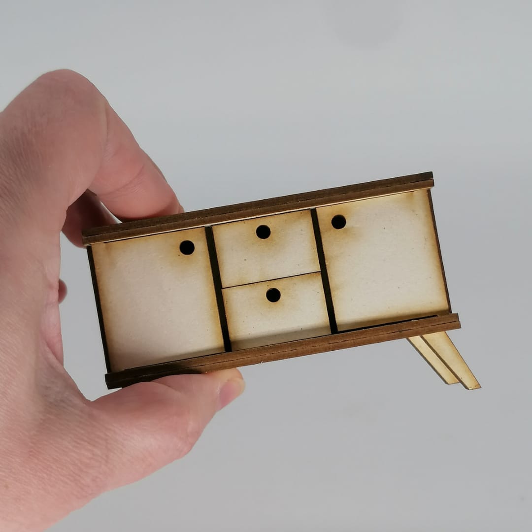 Digitaler Download – SVG Schnittdatei für Lasercut für eine Miniatur Kommode für Dein Zauberhaftes Diorama, Book Nook oder Puppenhaus.